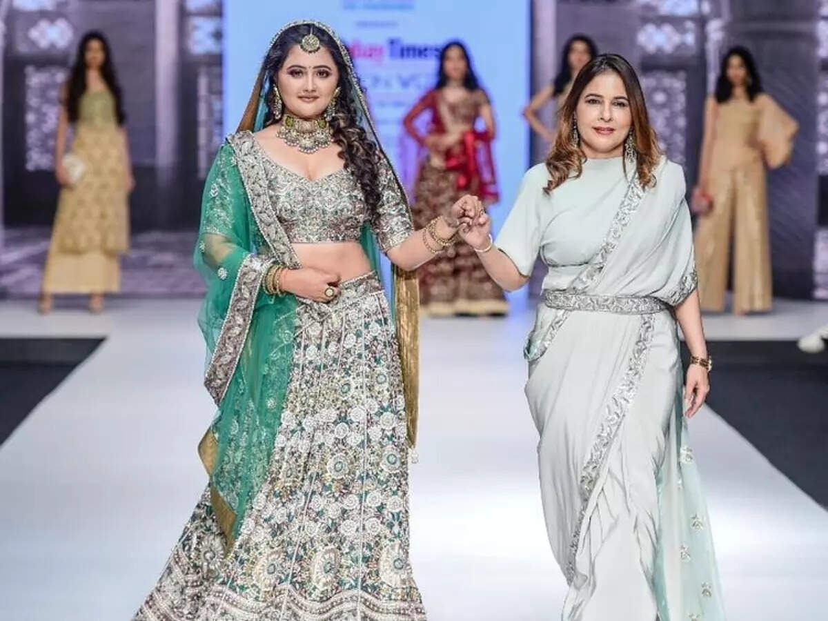 The showstopper for Anu Mehra was TV actor Rashami Desai, who wore a floral embroidered lehenga with a green dupatta.