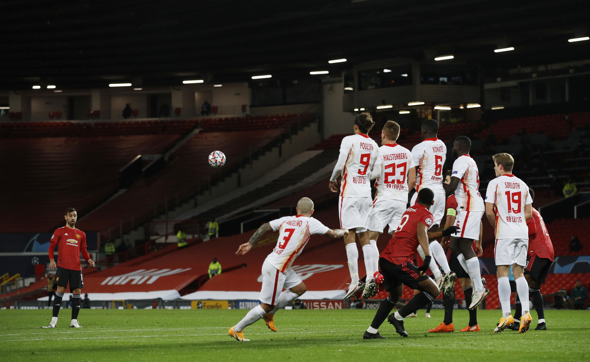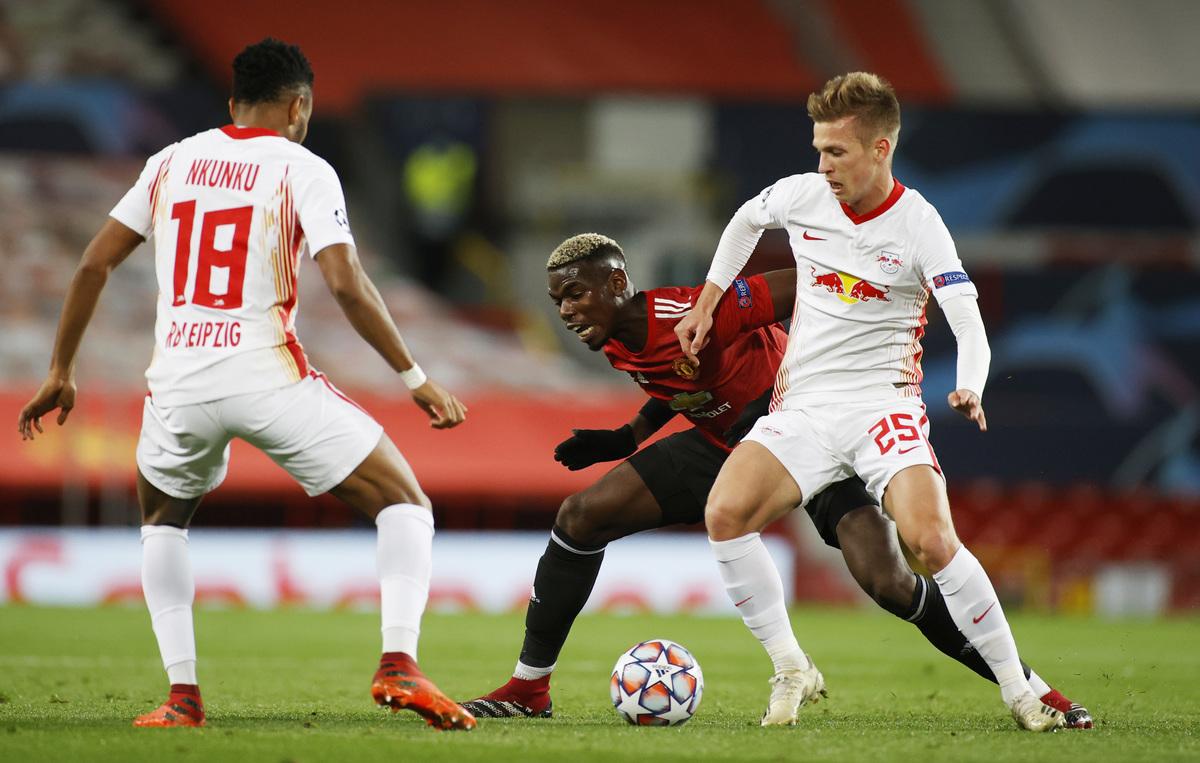 Leipzig, who reached the semi-finals in last season's competition, stuck in the game well and could have drawn level when Ibrahima Konate's header was kept out by David De Gea.