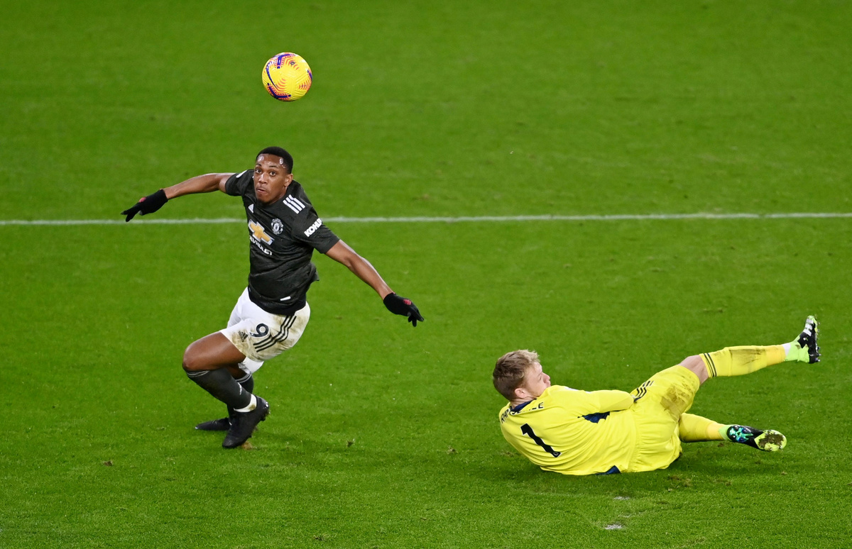 Six minutes after the break, Rashford added his second to make it 3-1, finishing off a fine passing move started by Pogba, with a shot that squeezed under Ramsdale's body.