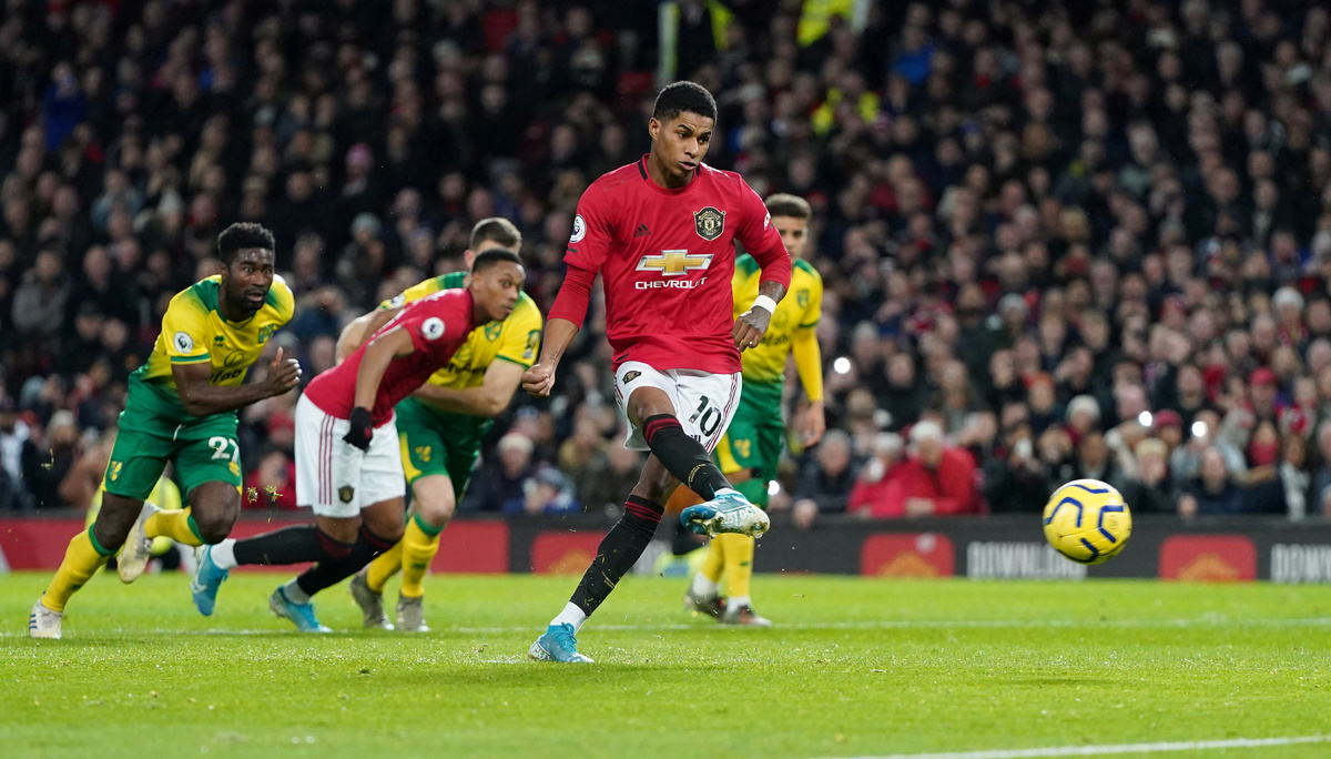 Rashford made it 2-0 with a 52nd-minute penalty as he drove his spot-kick low past goalkeeper Tim Krul, who had needlessly hauled down United's left back Brandon Williams with a mistimed tackle.