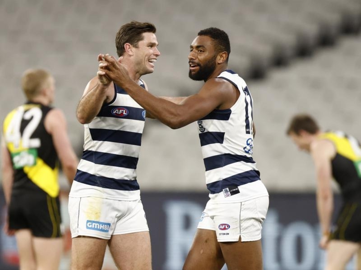 Geelong sit second on percentage behind the Western Bulldogs after the 15.5 (95) to 8.9 (57) win over Richmond made it 10 victories in their last 11 outings.
