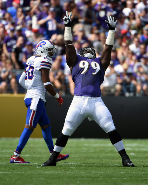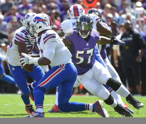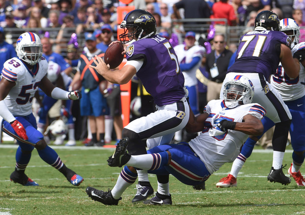 BALTIMORE _ Ravens defensive players flew to the ball. Buffalo Bills quarterback Tyrod Taylor was hit and harassed throughout. And when the Ravens needed one more defensive play, it was the defense's longest-tenured member to come up with it.