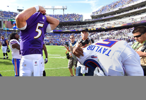 Given one more chance to lead the Bills back, Taylor, the former Raven, had the ball in his hands with 5:35 to play, and Buffalo trailing by six. But Buffalo, as it did for much of the afternoon, went nowhere and Terrell Suggs sacked Taylor.