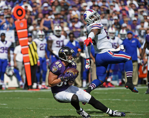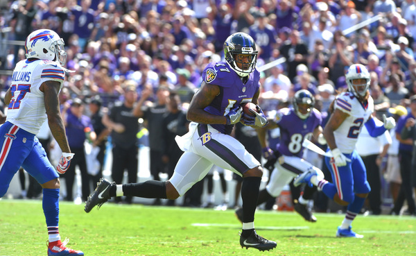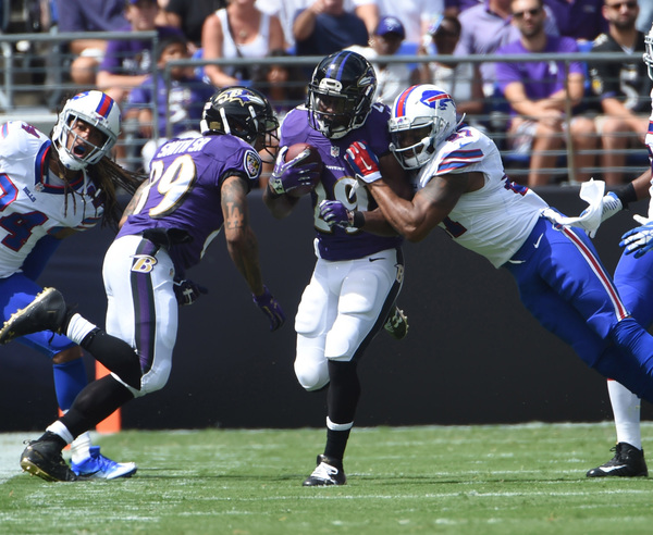 On their next possession, the Ravens drove the ball into Bills' territory. The drive started with an acrobatic catch from Breshad Perriman, the second-year receiver making his first NFL catch a memorable one. Flacco rolled out and found Kamar Aiken for 16 yards and the Ravens had the ball at Buffalo's 27.