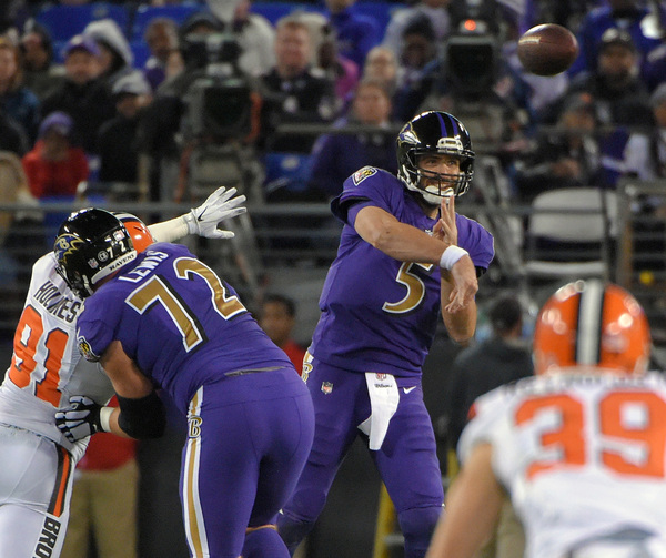 It took the Ravens seven plays and one costly Browns penalty to get into the end zone. Flacco's 9-yard pass to tight end Nick Boyle set up a first-and-goal, and a foolish unnecessary roughness penalty on Browns linebacker Christian Kirksey, who took a late shot at Ravens left tackle Ronnie Stanley, pushed the ball to the Browns' 4.