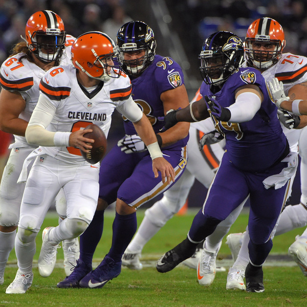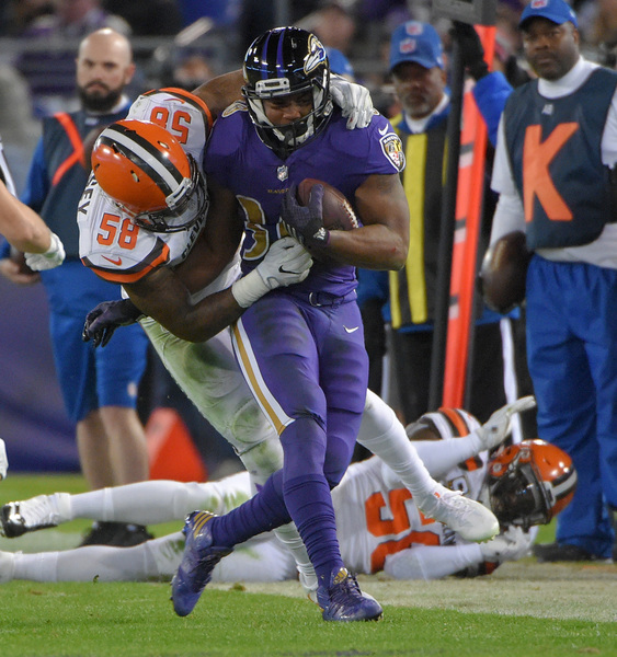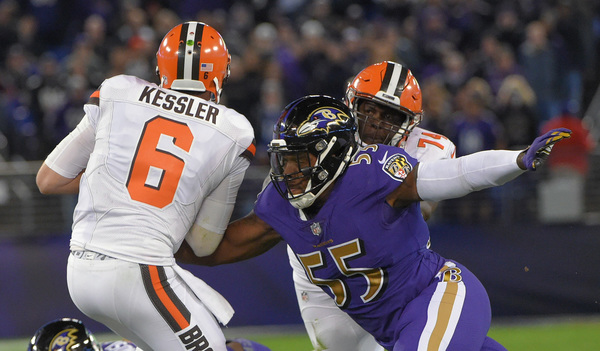 The Ravens defense again took control of the game early. On the Browns' second possession, Suggs strip-sacked rookie DeShone Kizer on third-and-long and Judon recovered on Cleveland's 33-yard line.