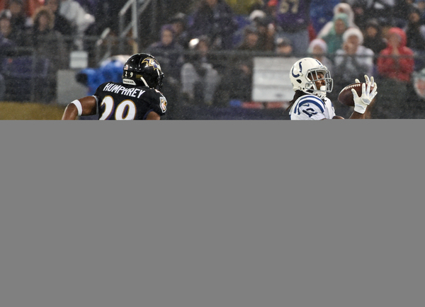 The Colts drove the ball down to the 10-yard line with less than two minutes to go, but cornerback Maurice Canady broke up a fourth-down pass, preserving the Ravens' 23-16 victory at wet and windy M&T Bank Stadium.