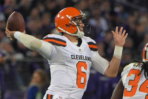 The Ravens forced three second-half turnovers, picking off Josh McCown twice and Terrell Suggs registering a strip sack after beating standout left tackle Joe Thomas off the edge. McCown relieved rookie starter Cody Kessler in the third quarter.