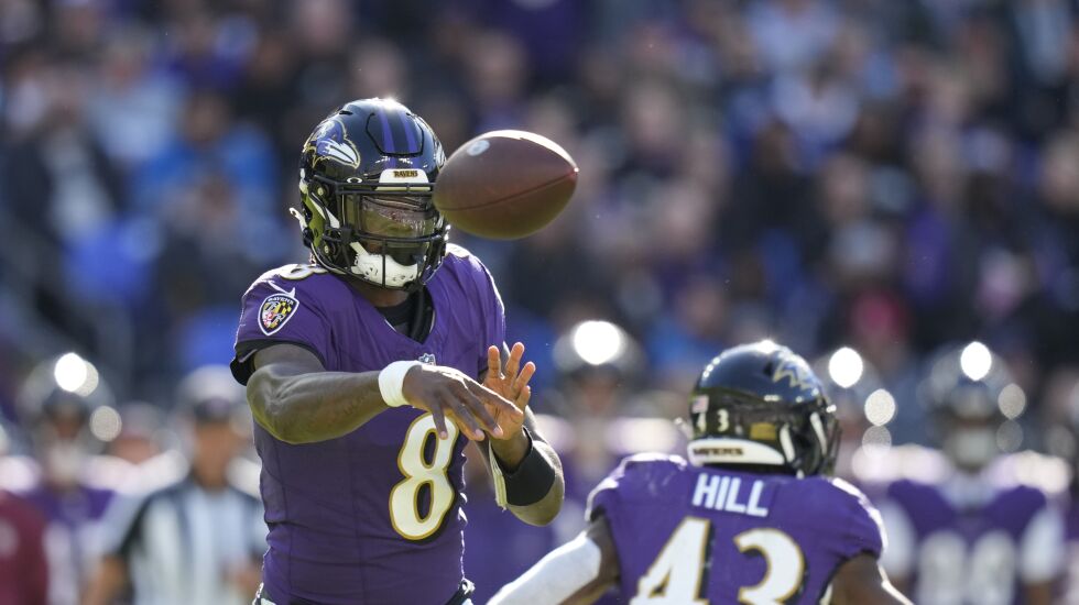 BALTIMORE — Lamar Jackson guided Baltimore to touchdowns on its first four possessions of a dominant first half, and the Ravens trounced the Detroit Lions 38-6 on Sunday in a matchup of division leaders that was lopsided from the start.