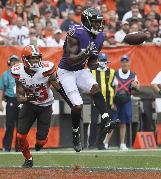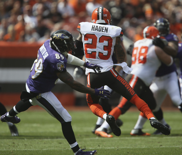 Flacco's sluggish play added to the Ravens' early woes. Two plays from scrimmage after Crowell's touchdown, the Ravens quarterback tried to force the ball into wide receiver Steve Smith Sr. However, cornerback Joe Haden, the Browns' top defensive player, stepped in front of the ball for the interception. Haden's 9-yard return gave the Browns the ball on the Ravens' 27.