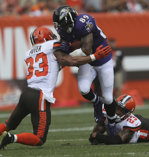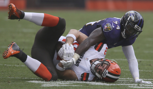 The Ravens then barely hung on with C.J. Mosley intercepting a beat-up Josh McCown just outside the end zone with 13 seconds to play. A play before the interception, Browns wide receiver Terrelle Pryor was called for a taunting penalty for tossing the ball off of Lardarius Webb after a sideline reception that would have put the Browns near the goal-line.