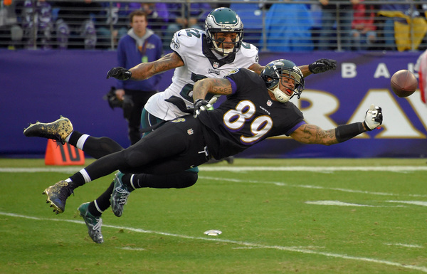 The deflection helped the Ravens survive after they had led 27-17 and had the ball on the Eagles' 11-yard line, looking for the knockout blow. But quarterback Joe Flacco curiously threw the ball on first down and an interception set the Philadelphia comeback in motion.