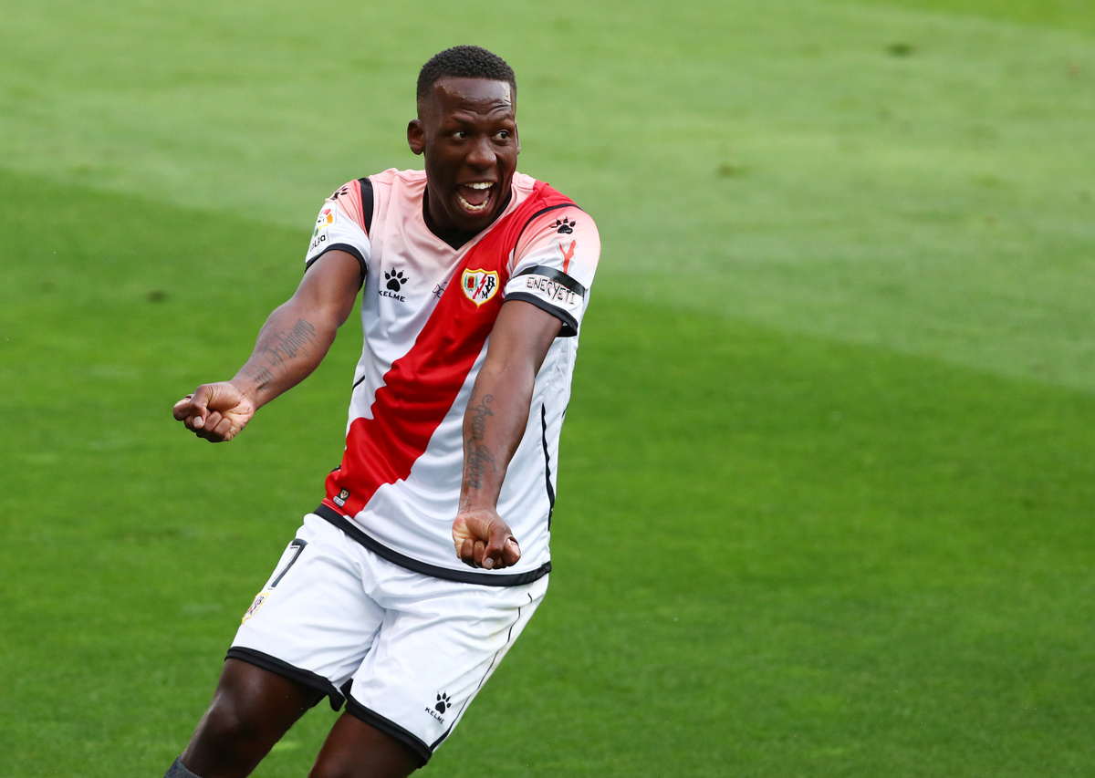 Soccer Football - Rayo Vallecano v Albacete - Campo de Futbol de Vallecas, Madrid, Spain - June 10, 2020 Rayo Vallecano's Luis Advincula celebrates scoring their first goal, as play resumes behind closed doors following the outbreak of the coronavirus disease (COVID-19) REUTERS/Sergio Perez