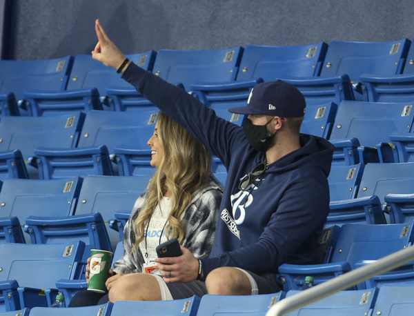 Tampa Bay Rays Austin Meadows, right, is seen in the stands with an unidentified woman during the Tampa Bay Rays game against the Toronto Blue Jays Wednesday, September 30, 2020 in St. Petersburg, Florida. (Chris Urso/Tampa Bay Times/TNS)