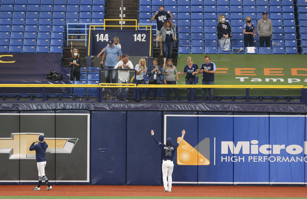 Tampa Bay Rays relief pitcher Aaron Loup (15) delivers a pitch during the seventh inning of game 2 on Wednesday, September 30, 2020, of the American League East matchup in a best-of-three wild card series at Tropicana Field in St. Petersburg, Florida. (Douglas R. Clifford/Tampa Bay Times/TNS)Tampa Bay Rays right fielder Brett Phillips (14), bottom, says goodbye to friends and family after the Tampa Bay Rays defeated the Toronto Blue Jays 8-2, advancing to the American League Division Series, Wednesday, Sept. 30, 2020 in St. Petersburg, Florida. (Chris Urso/Tampa Bay Times/TNS)The Tampa Bay Rays celebrate their 8-2 win over the Tampa Bay Rays advancing to the American League Division Series Wednesday, September 30, 2020 in St. Petersburg, Florida. (Chris Urso/Tampa Bay Times/TNS)Tampa Bay Rays right fielder Hunter Renfroe (11) celebrates his grand slam home run with Tampa Bay Rays shortstop Willy Adames (1) during the second inning of game two on Wednesday, September 30, 2020, of the American League East matchup in a best-of-three wild card series at Tropicana Field in St. Petersburg, Florida. (Douglas R. Clifford/Tampa Bay Times/TNS)Tampa Bay Rays shortstop Willy Adames (1), left, and Tampa Bay Rays center fielder Kevin Kiermaier (39), right, celebrate their 8-2 win over the Toronto Blue Jays as Tampa Bay Rays third baseman Joey Wendle (18) looks on Wednesday, September 30, 2020 in St. Petersburg, Florida. The Rays will advance to the American League Division Series. (Chris Urso/Tampa Bay Times/TNS)Tampa Bay Rays right fielder Hunter Renfroe (11) watches the ball fly over the wall after connecting for a grand slam home run in the second inning against the Toronto Blue Jays Wednesday, September 30, 2020 in St. Petersburg, Florida. (Chris Urso/Tampa Bay Times/TNS)The Tampa Bay Rays celebrate their win at the conclusion of game two on Wednesday, September 30, 2020, of the American League East matchup in a best-of-three wild card series at Tropicana Field in St. Petersburg, Florida. (Douglas R. Clifford/Tampa Bay Times/TNS)
