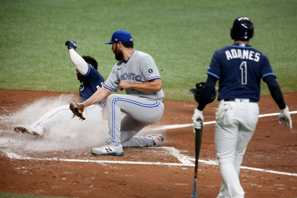 The Rays got their first run in the fourth. Arozarena, continuing his impressive introductory tour, laced a tripled to right-center to open the fourth off Jays lefty reliever Robbie Ray, then scored two batters later on a ball four wild pitch.