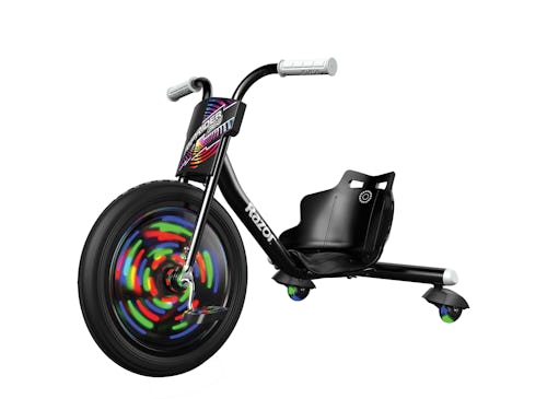 Rounding out the Lightshow range are the A+ Kick Lightshow kick scooter ($44.99), RipStik DLX Mini Lightshow ($59.99), and our favorite, the RipRider 360 Lightshow drift trike ($99.99). The LED lights in the entire range are motion-sensitive, so they turn on when you hop on and start rolling, and turn off when you stop.