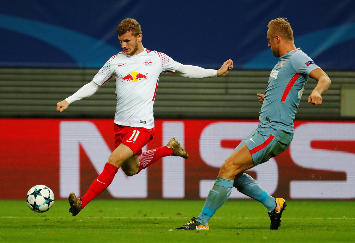 Soccer Football - Champions League - RB Leipzig vs AS Monaco - Red Bull Arena, Leipzig, Germany - September 13, 2017 RB Leipzig's Timo Werner misses a shot at goal REUTERS/Fabrizio Bensch