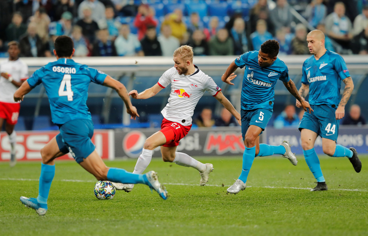 ST PETERSBURG (Reuters) - RB Leipzig were dominant as they followed up on last Saturday's eight-goal demolition of Mainz 05 in the Bundesliga by beating Zenit St Petersburg 2-0 away to stay top of their Champions League group on Tuesday.