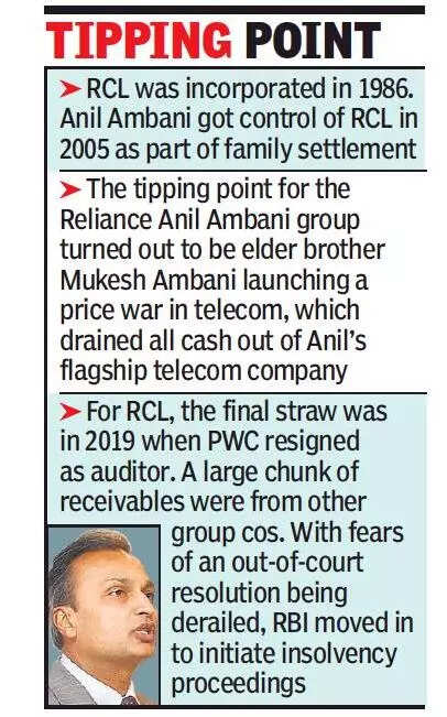 The Anil Ambani-owned RCL is the third financial services firm to face insolvency proceedings after the law was amended to include NBFCs.