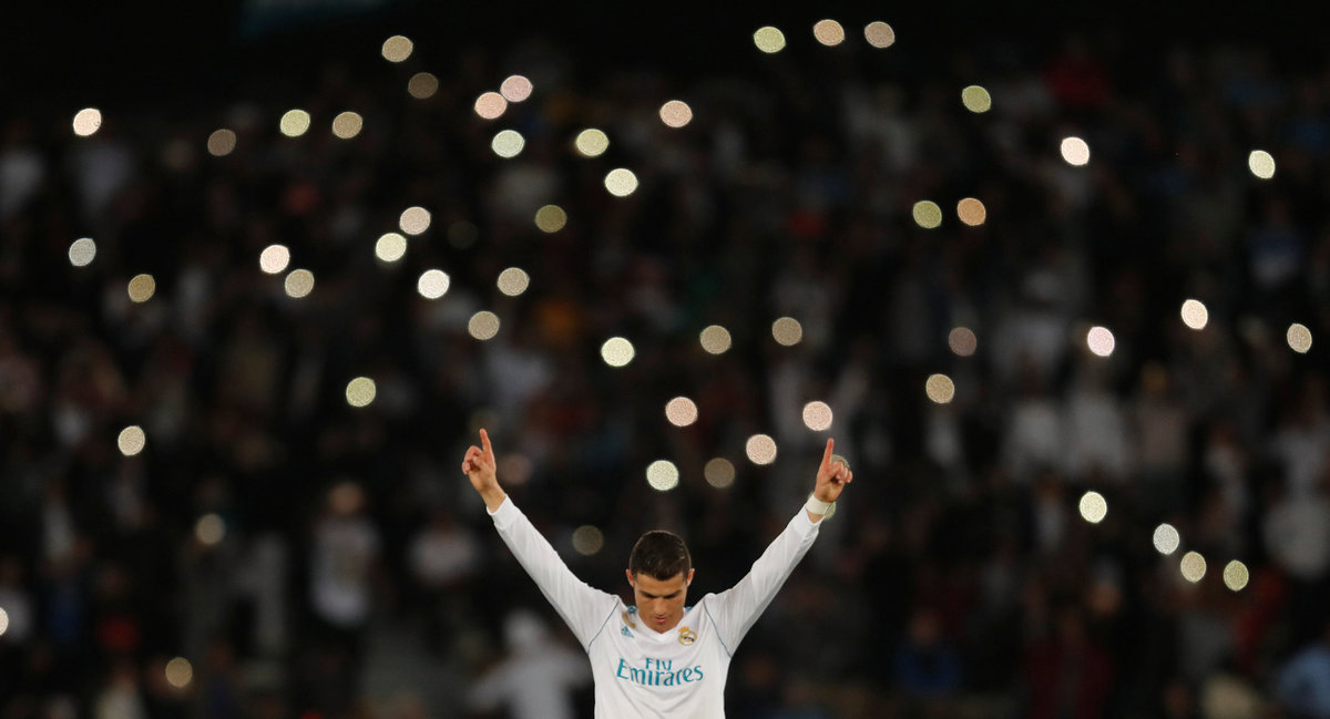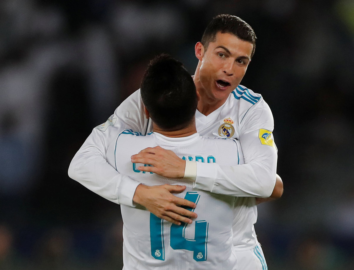 Soccer Football - FIFA Club World Cup Final - Real Madrid vs Gremio FBPA - Zayed Sports City Stadium, Abu Dhabi, United Arab Emirates - December 16, 2017 Real Madrid’s Cristiano Ronaldo celebrates scoring their first goal with Casemiro REUTERS/Amr Abdallah DalshSoccer Football - FIFA Club World Cup Final - Real Madrid vs Gremio FBPA - Zayed Sports City Stadium, Abu Dhabi, United Arab Emirates - December 16, 2017 Real Madrid’s Cristiano Ronaldo celebrates scoring their first goal with Casemiro and Sergio Ramos REUTERS/Ahmed JadallahSoccer Football - FIFA Club World Cup Final - Real Madrid vs Gremio FBPA - Zayed Sports City Stadium, Abu Dhabi, United Arab Emirates - December 16, 2017 Gremio’s Marcelo Grohe looks dejected after conceding their first goal while Real Madrid’s Karim Benzema celebrates REUTERS/Ahmed JadallahSoccer Football - FIFA Club World Cup Final - Real Madrid vs Gremio FBPA - Zayed Sports City Stadium, Abu Dhabi, United Arab Emirates - December 16, 2017 Gremio’s Fernandinho in action with Real Madrid’s Toni Kroos REUTERS/Matthew ChildsSoccer Football - FIFA Club World Cup Final - Real Madrid vs Gremio FBPA - Zayed Sports City Stadium, Abu Dhabi, United Arab Emirates - December 16, 2017 Real Madrid’s Cristiano Ronaldo kisses his award as he celebrates after the game REUTERS/Amr Abdallah Dalsh
