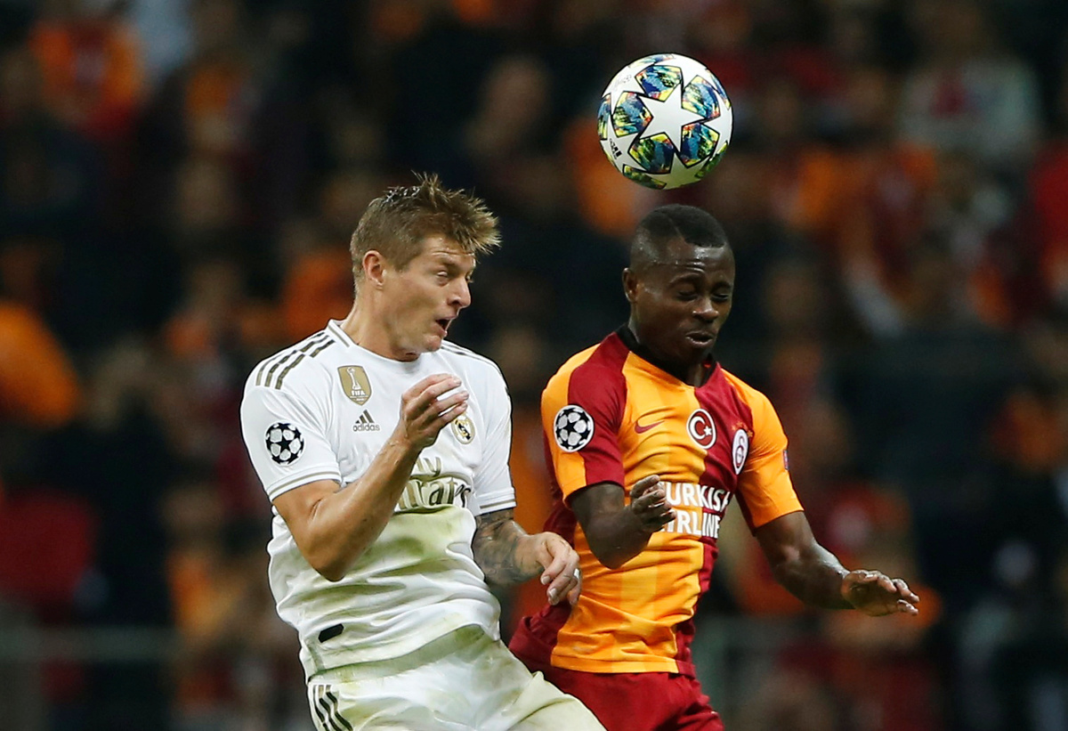 Soccer Football - Champions League - Group A - Galatasaray v Real Madrid - Turk Telekom Stadium, Istanbul, Turkey - October 22, 2019 Real Madrid's Toni Kroos in action with Galatasaray's Jean Michael Seri REUTERS/Kemal Aslan