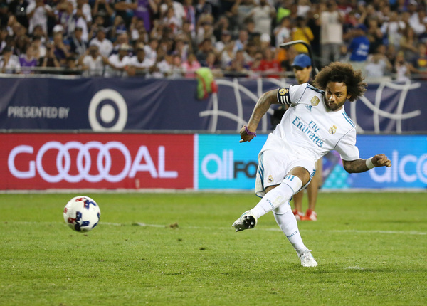 The L.A. Galaxy's Giovani dos Santos missed the second and Real Madrid went on to win 4-2 in penalties. Marcelo converted the fourth and final penalty.