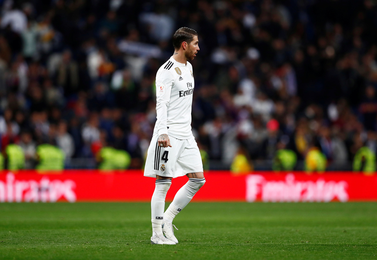 Ramos received a yellow card for a foul on Kasper Dolberg late in his side's 2-1 win at Ajax Amsterdam in their Champions League last-16, first-leg match.