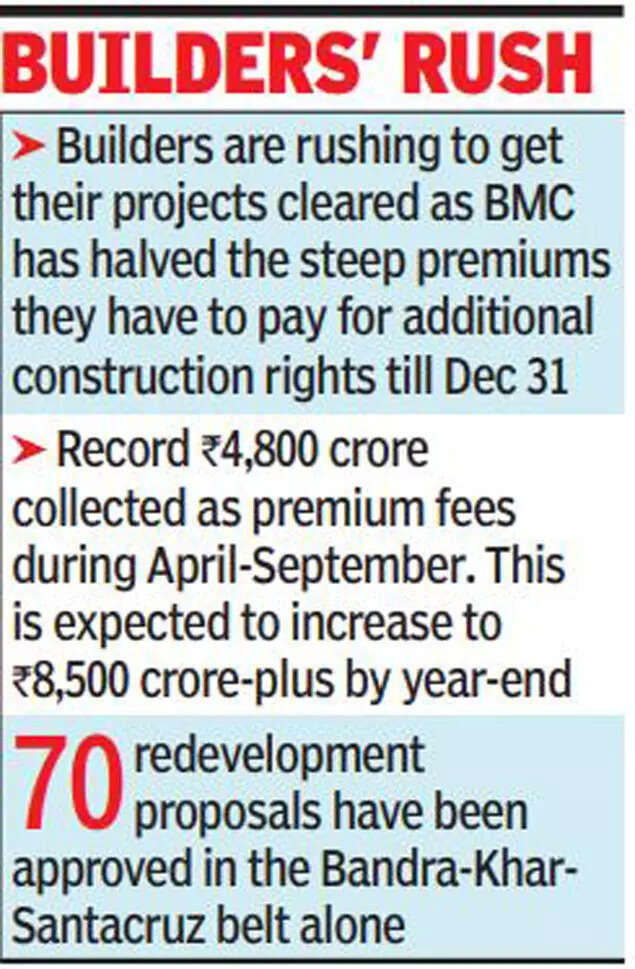 MUMBAI: Beating the pandemic blues, construction activity in the city is seeing a remarkable uptick with builders rushing to BMC offices to get their project files approved before December 31.