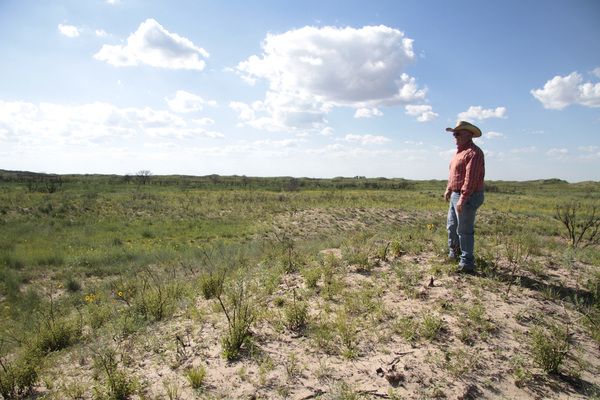 CLARK COUNTY, Kan. _ Mile after mile, ragweed and other plants brushed the sides of Greg Gardiner's pickup as he piloted pastures lined with sandy tracks engulfed in green. In places, jungles of wild sunflowers up to 5 feet tall grew where, three months ago, just sand and ash had stretched for as far as the eye could see.