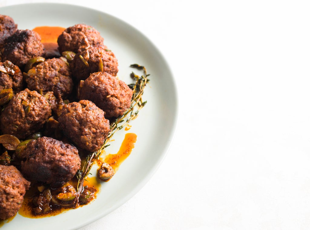 Chopped green olives add a briny finish; look for firm, meaty green olives such as Castelvetrano. And serve the meatballs with plenty of warm, crusty bread.