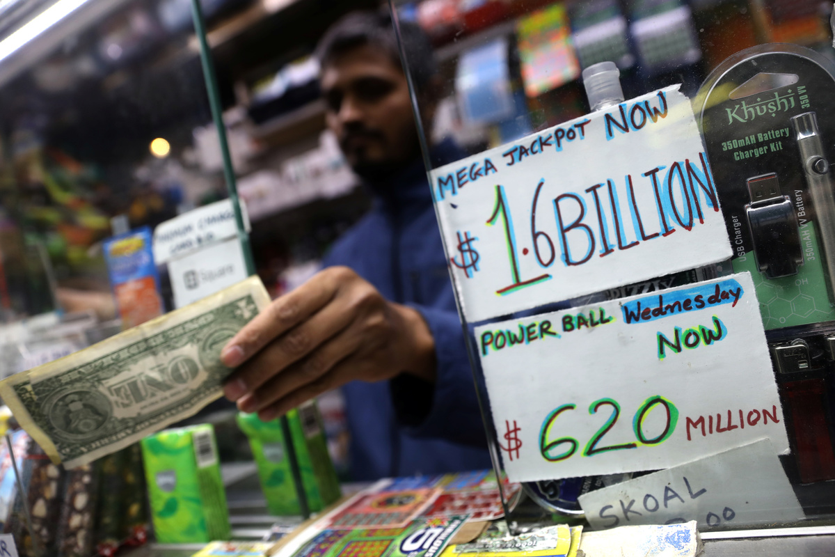 On Tuesday morning, a few customers waited in line at a newsstand in the Port Authority Bus Terminal in New York City to purchase last-minute tickets. Fernando Chavez, 27, said if he wins he would immediately hire a financial adviser.