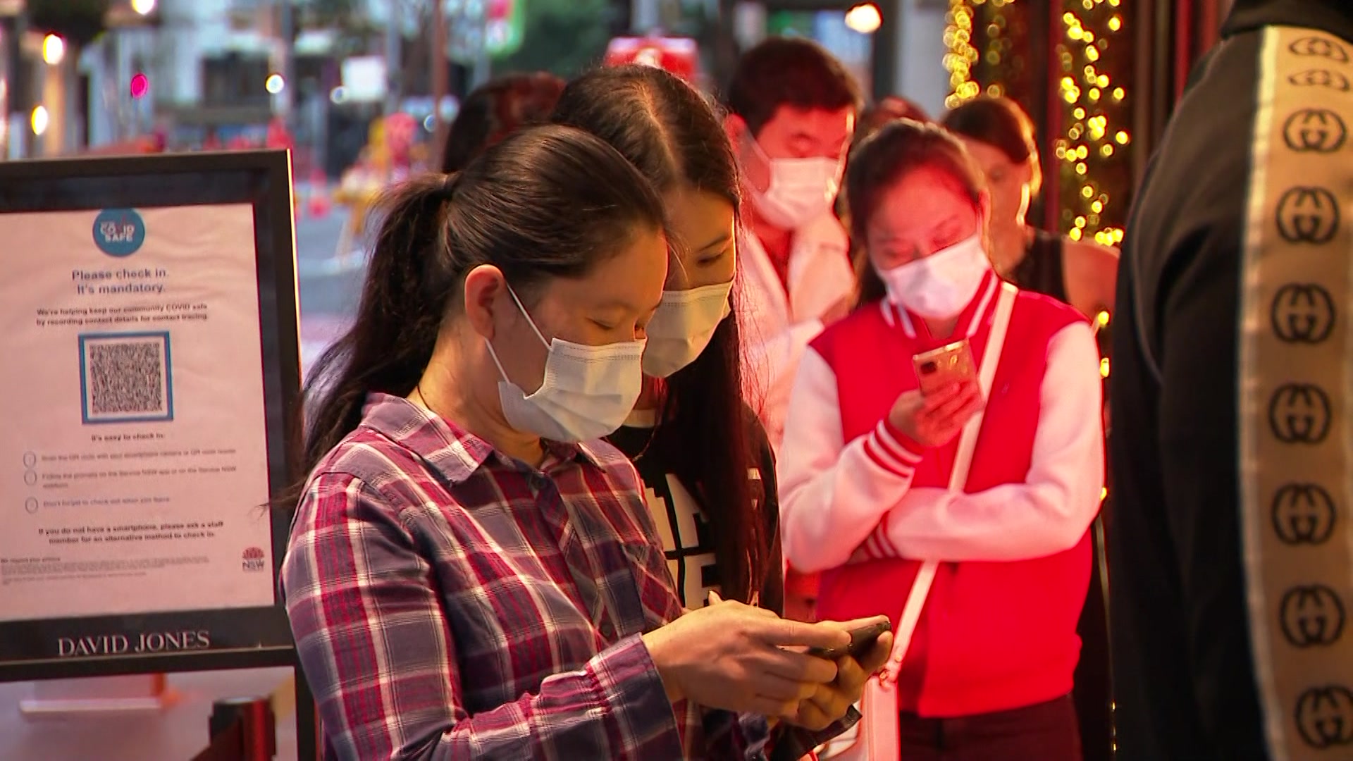 Face masks and social distancing were a constant in the queues, with shoppers only briefly pausing to check in before rushing inside.