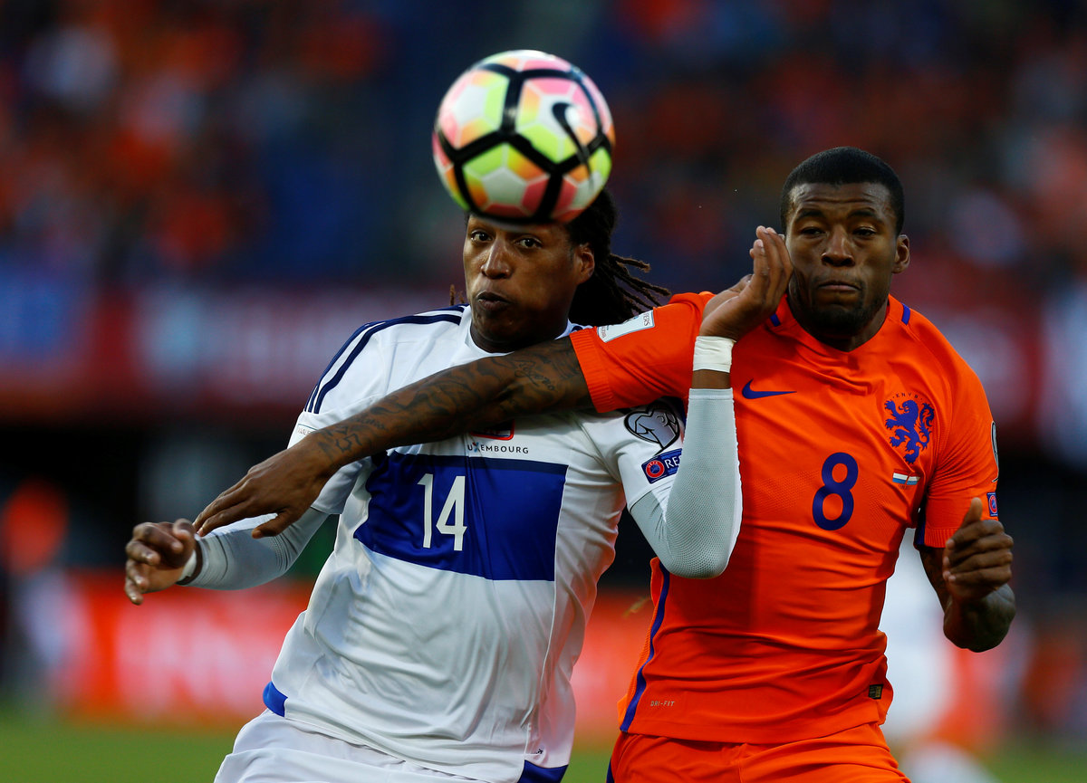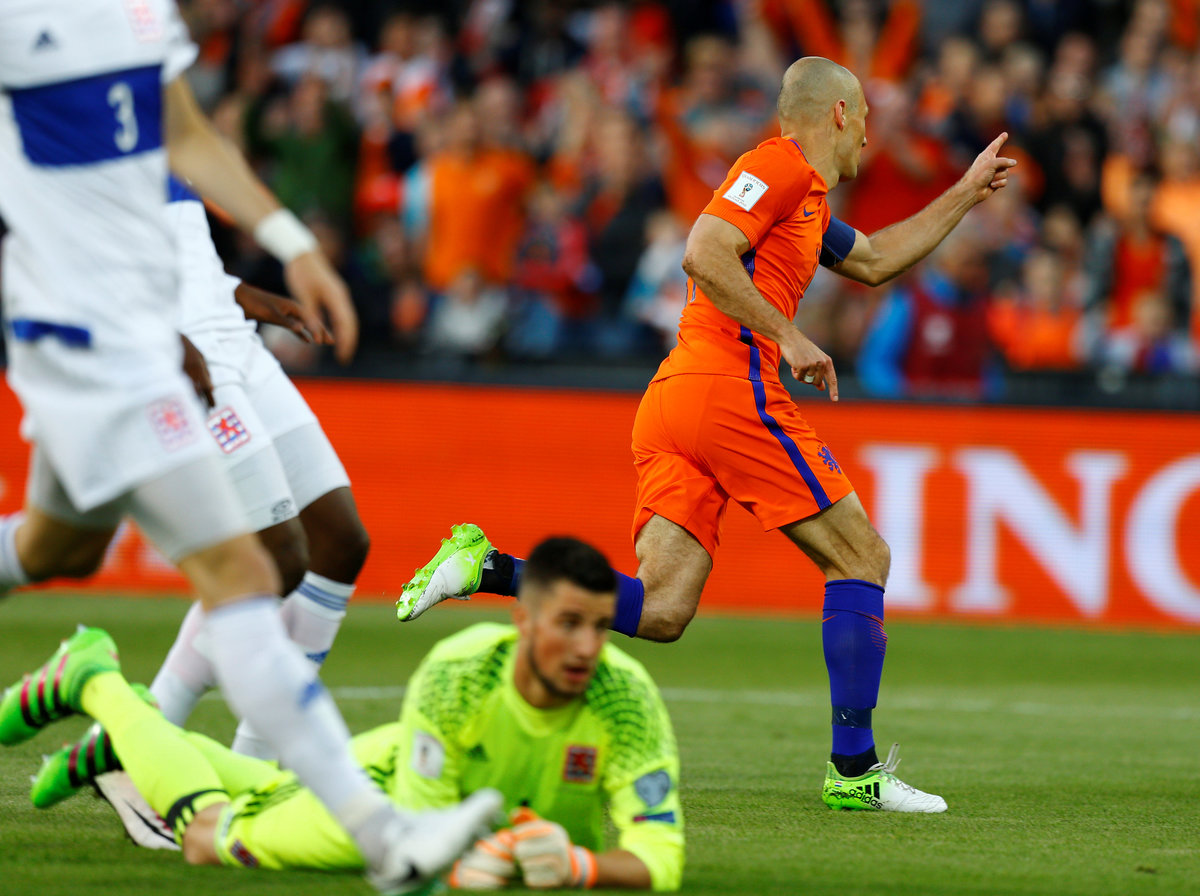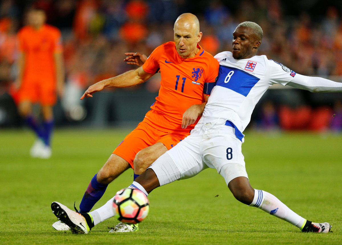 Football Soccer - Netherlands v Luxembourg - World Cup 2018 Qualifier - De Kuip Stadion, Rotterdam, Netherlands - 09/06/17 - Luxemburg’s Sebastien Thill (R) in action. REUTERS/Michael KoorenFootball Soccer - Netherlands v Luxembourg - World Cup 2018 Qualifier - De Kuip Stadion, Rotterdam, Netherlands - 09/06/17 - Netherlands’ Wesley Sneijder and Netherlands’ Arjen Robben celebrate a goal. REUTERS/Michael KoorenFootball Soccer - Netherlands v Luxembourg - World Cup 2018 Qualifier - De Kuip Stadion, Rotterdam, Netherlands - 09/06/17 - Luxembourg's goalkeeper Ralph Schon reacts after a goal. REUTERS/Michael KoorenFootball Soccer - Netherlands v Luxembourg - World Cup 2018 Qualifier - De Kuip Stadion, Rotterdam, Netherlands - 09/06/17 - Netherlands' coach Dick Advocaat and assistant coach Ruud Gullit are seen before the match against Luxembourg. REUTERS/Michael KoorenFootball Soccer - Netherlands v Luxembourg - World Cup 2018 Qualifier - De Kuip Stadion, Rotterdam, Netherlands - 09/06/17 - Referee Bartosz Frankowski of Poland shows a yellow card to Luxemburg’s Laurent Jans. REUTERS/Michael KoorenFootball Soccer - Netherlands v Luxembourg - World Cup 2018 Qualifier - De Kuip Stadion, Rotterdam, Netherlands - 09/06/17 - Netherlands’ Arjen Robben scores. REUTERS/Michael Kooren Football Soccer - Netherlands v Luxembourg - World Cup 2018 Qualifier - De Kuip Stadion, Rotterdam, Netherlands - 09/06/17 - Netherlands’ Arjen Robben reacts. REUTERS/Michael KoorenFootball Soccer - Netherlands v Luxembourg - World Cup 2018 Qualifier - De Kuip Stadion, Rotterdam, Netherlands - 09/06/17 - Netherlands’ Arjen Robben scores. REUTERS/Michael KoorenFootball Soccer - Netherlands v Luxembourg - World Cup 2018 Qualifier - De Kuip Stadion, Rotterdam, Netherlands - 09/06/17 - Netherlands’ Georginio Wijnaldum and Luxembourg’s Gerson Rodrigues in action. REUTERS/Michael KoorenFootball Soccer - Netherlands v Luxembourg - World Cup 2018 Qualifier - De Kuip Stadion, Rotterdam, Netherlands - 09/06/17 - Dutch players react after a goal. REUTERS/Michael Kooren