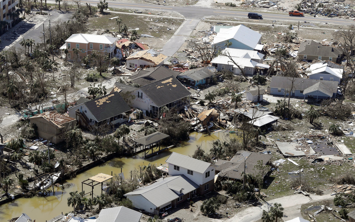 The tropical storm, which grew in less than two days into a Category 4 hurricane on the five-step Saffir-Simpson scale, tore apart entire neighborhoods in the Panhandle, reducing homes to naked concrete foundations or piles of wood and siding.