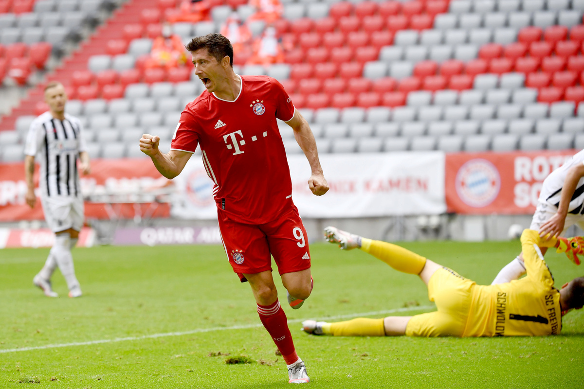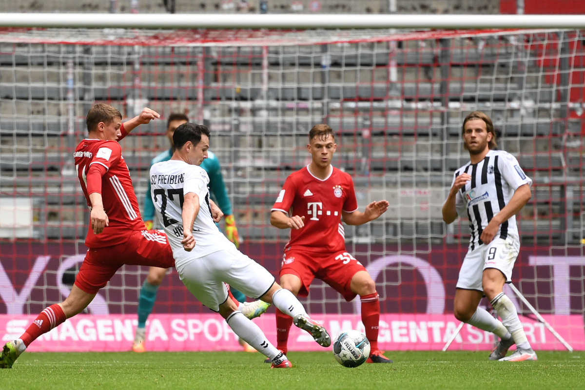 The striker then nodded in on the rebound in the 24th minute after Freiburg keeper Alexander Schwolow had blocked a Leon Goretzka shot before flicking in the third from a Lucas Hernandez cutback before halftime.