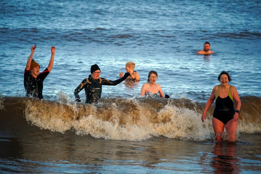 The balmier-than-usual start to the year saw people happily take part in traditional New Year’s Day swims across the country – including at Derby Pool, New Brighton, Wirral, and in the Firth of Forth at Portobello Beach in Edinburgh.