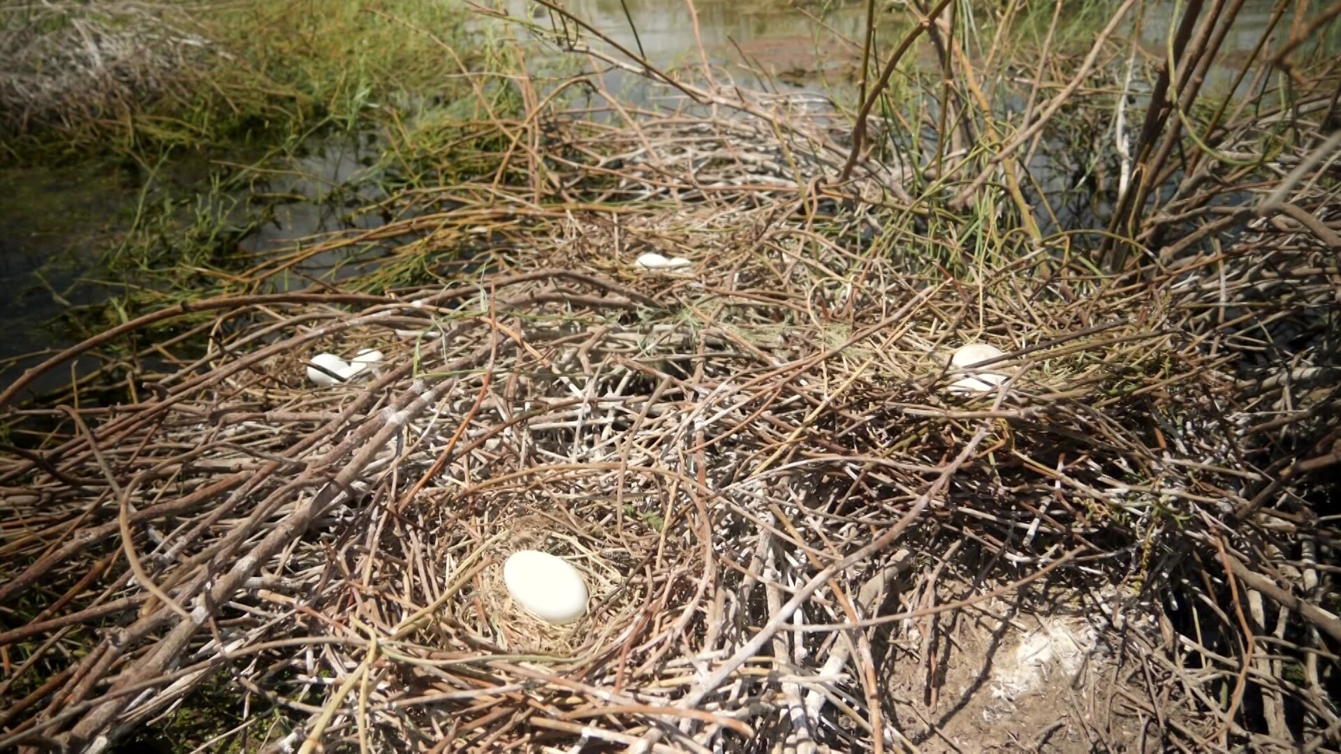 The team tags nests which will then be checked for eggs and how many chicks hatch.
