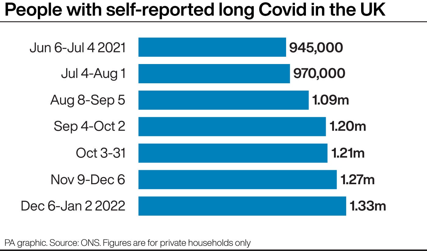 The latest estimate of 1.33 million people with long Covid is up from 1.27 million at the start of December and 945,000 in early July.