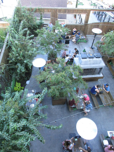 Another dozen taps await at the small, open-air rooftop bar, overlooking the walled backyard done up as an outdoor beer park with tables and games. Events range from tastings to live music.
