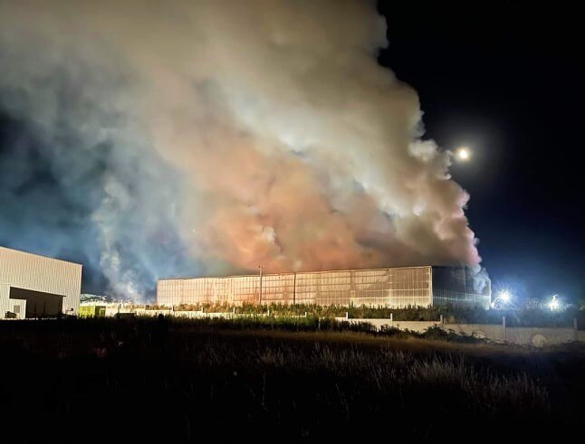 The facility was unoccupied when it caught fire.