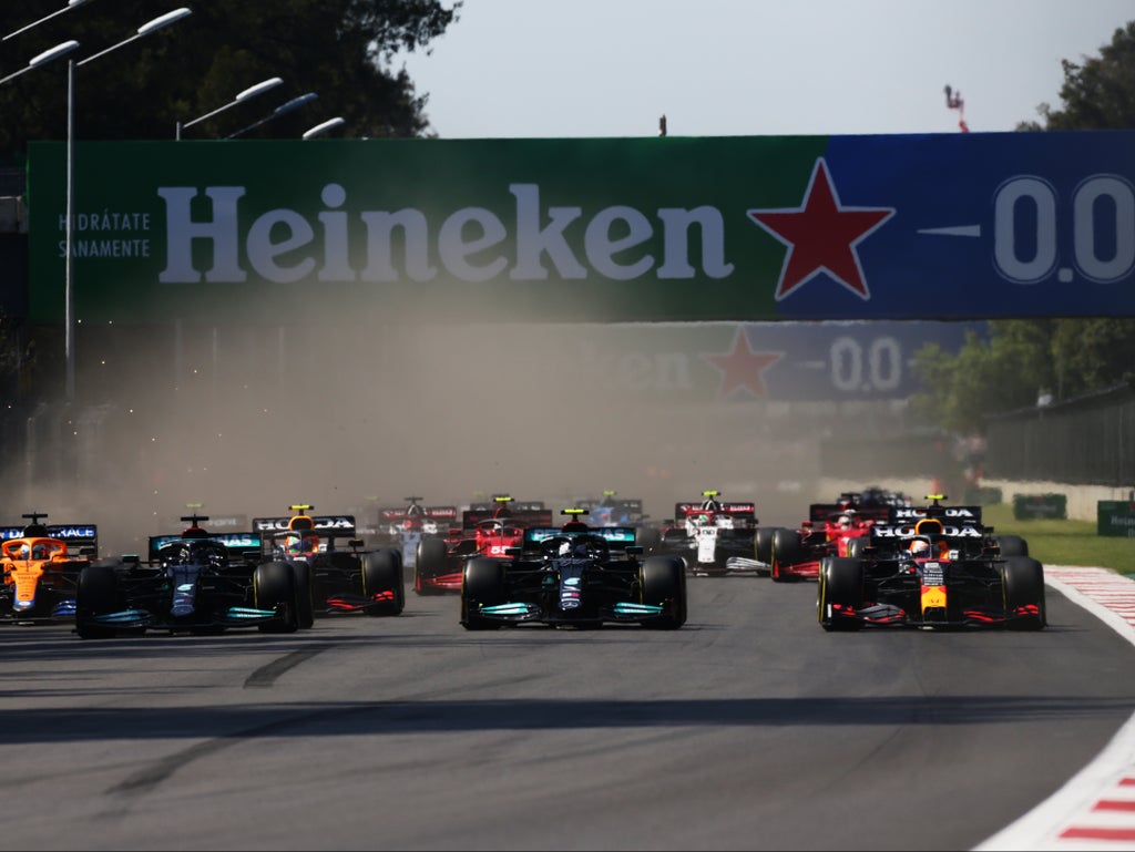 Verstappen’s team-mate Sergio Pérez became the first Mexican to finish on the podium at his home race, having been held off by the strong defensive driving of Hamilton for the final 12 laps.