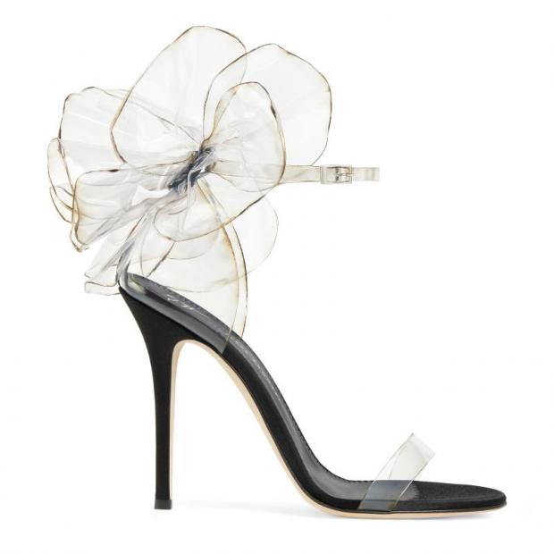 Oversize flowers in satin or transparent vinyl bloom in the iconic Peony collection of flat and stiletto-heels sandals.