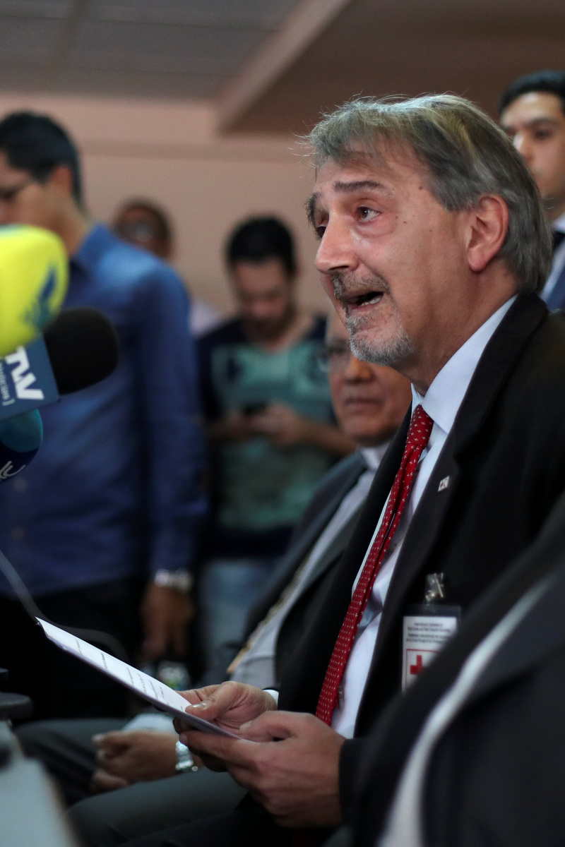 Francesco Rocca, President of the International Federation of Red Cross and Red Crescent Societies (IFRC), attends a news conference in Caracas, Venezuela Mach 29, 2019. REUTERS/Ivan Alvarado