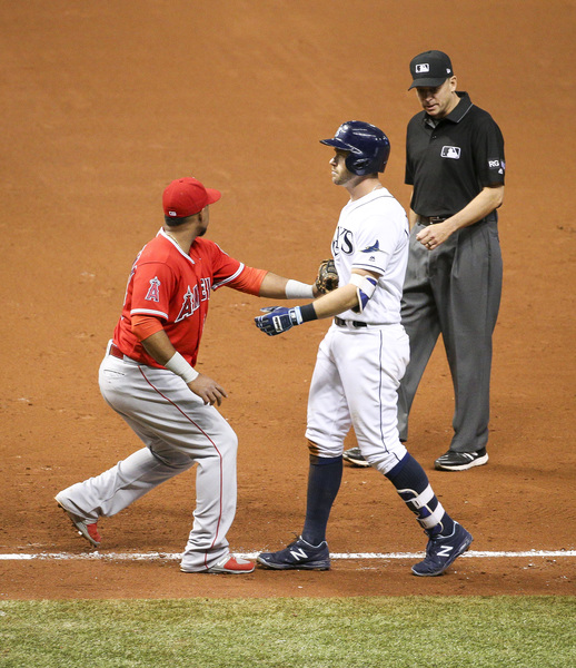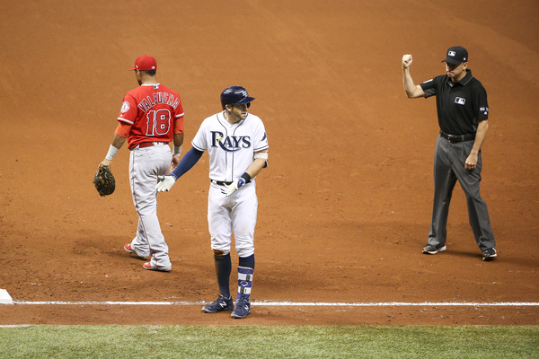 Anytime Maybin draws a walk now, it's hard earned, because no pitcher wants to put him on with Mike Trout on deck. After Maybin walked, the Rays tried to get Trout to chase two pitches before they simply walked him intentionally, to load the bases.