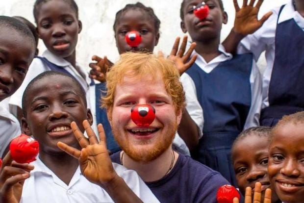 Comic Relief also partners with over 150 celebrities who support the cause, including Jon Stewart, Justin Bieber, Kate Moss, Bill Gates, and Sam Smith.