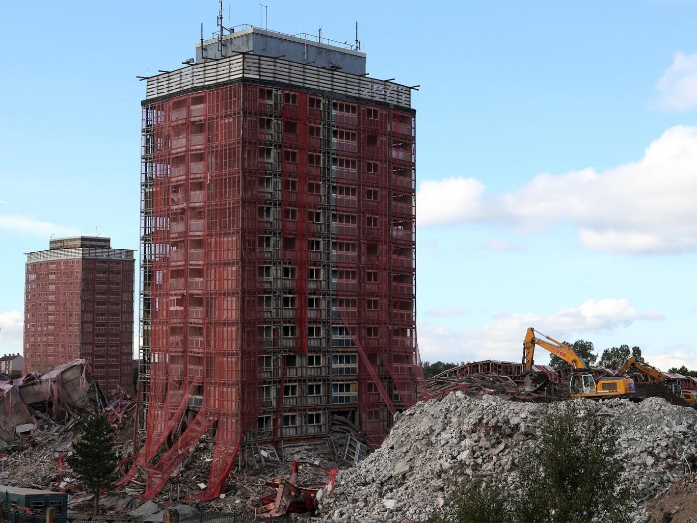 The blast echoed across Glasgow and huge plumes of dust and debris filled the air as six of the city’s Red Road tower blocks were brought down last weekend – well, almost. Two towers remained half standing, leaving more than 2,000 people unable to return home.