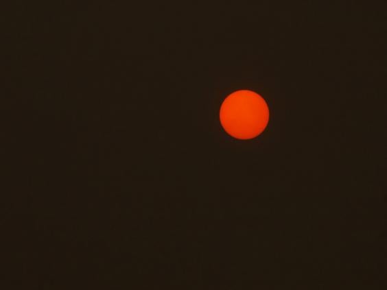 "So it's most likely the appearance of sunset at midday is caused by the particles scattering the light and giving the appearance of a red sun.