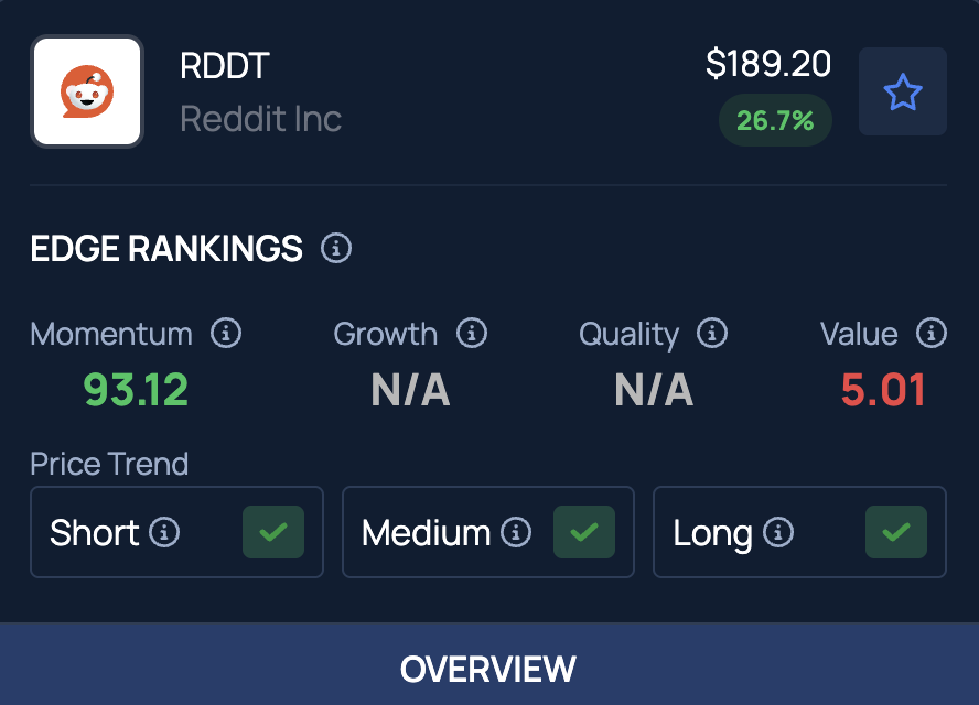 With momentum in the 93rd percentile, Benzinga’s Edge Stock Rankings show RDDT trending positively across all time frames—see how it stacks up against other social media stocks.