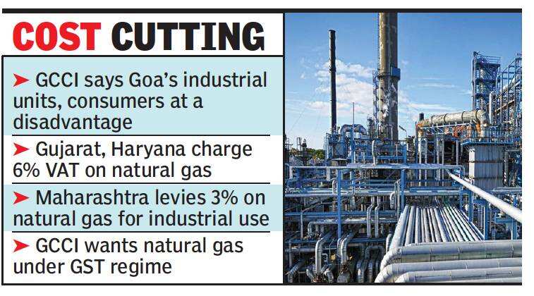 The sharp difference between the VAT levied in Goa and in the neighbouring states will put Goa’s industrial units at a disadvantage, said GCCI. It has also called for the inclusion of natural gas under the goods and services tax (GST) regime.